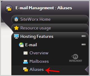 3. Click the E-mail menu item and then click on the Aliases option.