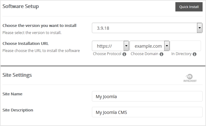 - Choose Installation URL: Choose the appropriate protocol/domain. Inside the «In Directory» field, should you want to install this in a directory, i.e. example.com/directory, enter the directory name. Otherwise, leave it blank to install in your main domain, i.e. example.com