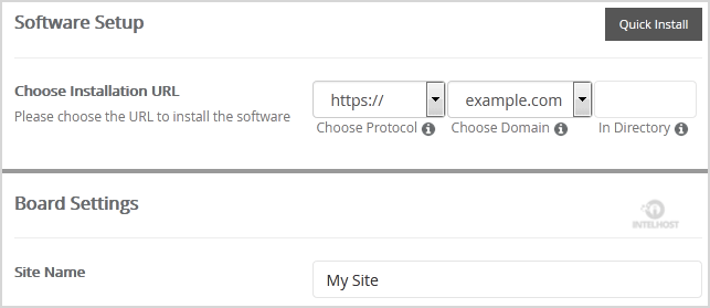 - Choose Installation URL: Choose the appropriate protocol/domain. Inside the «In Directory» field, should you want to install this in a directory, i.e., example.com/directory, enter the directory name. Otherwise, leave it blank to install in your main domain, i.e., example.com.