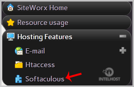2. Under SiteWorx Menu, click the Hosting Features menu item if it is not already open.